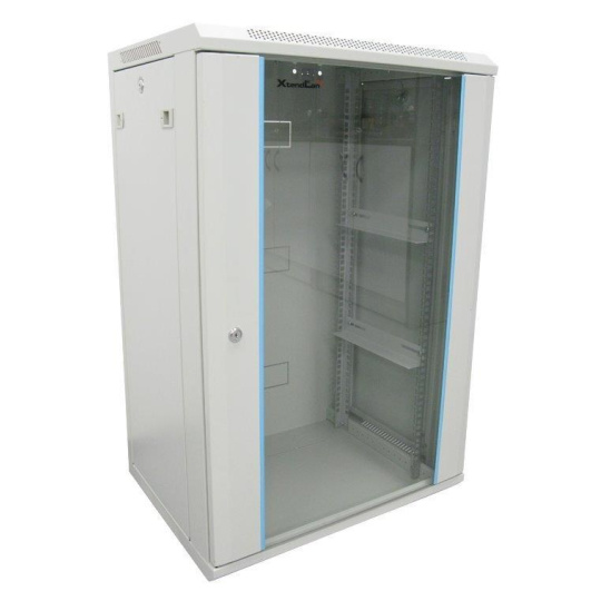 BAZAR - XtendLan 19" nástěnný rozvaděč 15U 600x450, nosnost 60 kg, skleněné dveře, svařovaný, šedý - poškozený obal
