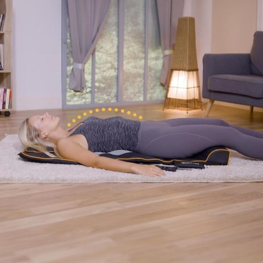 Masážna podložka ponúka cvičenie a strečing inšpirovaný jogou zameraný na ramená, chrbát a krk, a to úplne bez námahy. Toto príjemné, intenzívne natiahnutie vedie k hlbokému uvoľneniu a pocitu pohody, aký ste ešte nikdy nezažili.