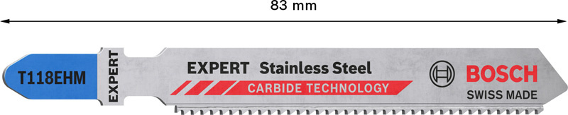 Vydrží až 50× dlhšie v odolných materiáloch než pilový plát Bosch T118G - Ťažba plechov z nerezovej ocele je každodennou úlohou pre kovodelníkov. Je bežné aj pri montáži kuchýň a stavebnom priemysle či kancelárskych budovách. Profesionáli, ktorí sa tejto práce venujú, potrebujú spoľahlivý plátok, ktorý sa nepoškodzuje. Iba tak sa možno vyhnúť frustrácii z neustálej výmeny plátkov. Pilový plátok EXPERT Stainless Steel je optimalizovaný pre najtvrdšie kovy a má rozteč zubov zodpovedajúcu hrúbke plechov, ktoré spracúvate. Extrémna odolnosť tohto plátku zaručuje karbidová technológia Bosch Carbide Technology – ozubenie z najtvrdšieho kovu je k telu privarené laserom. Reže najodolnejšie plechy mimoriadne efektívne a ponúka tie najlepšie životnosti. Pilový plátok Bosch EXPERT Stainless Steel na tenké materiály sa dodáva v dvoch verziách: Pilový plátok T118 AHM pre rezy do tenkého plechu má veľmi jemnú rozteč zubov. Verzia T118 EHM so strednou roztečou ozubenia je potom najlepšou voľbou pre remeselníkov, ktorí chcú rezať stredne silné plechy z nerezovej ocele tej najvyššej pevnosti alebo tenkostenné trubky. Kompatibilný so všetkými pílami s upínaním do T