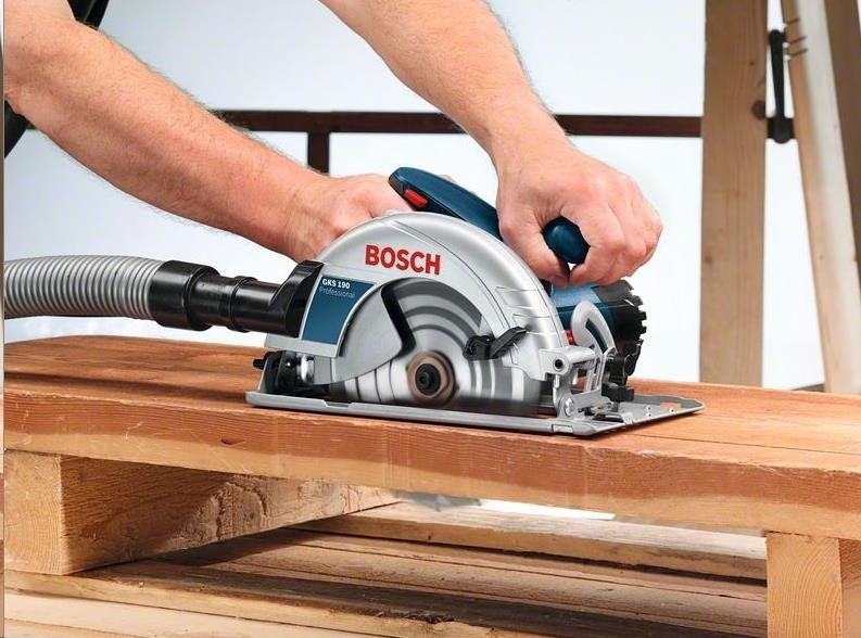 Ruční okružná píla BOSCH GKS 190 Professional pre rýchle a všestranné každodenné používanie. Popis: Výkonný motor 1 400 W zabezpečuje veľkú ťahovú silu pri rezaní akéhokoľvek druhu dreva Plechová základná doska a uzavretý kyvný ochranný kryt z hliníkovej zliatiny litý za studena odolajú aj tvrdým nárazom Najnižšia hmotnosť v tejto triede pre optimálnu manipuláciu Optimalizované odvádzanie pilín a výkonné ofukovanie pre voľný výhľad na narýsovanú čiaru a presné vedenie rezu Aretačné tlačidlo vretena Odsávanie prachu Technické údaje: Príkon: 1.400 W Priemer pílového kotúča: 190 mm Priemer upínacieho otvoru: 30 mm Hĺbka rezu pri 90°: 70 mm Hĺbka rezu pri 45°: 50 mm Otáčky naprázdno: 5 500 min-1 Napätie: 230V Hmotnosť: 4,2 kg Štandardné príslušenstvo: Pílový kotúč HM 190 mm, Imbusový kľúč SW 5 (ET č. 1 907 950 006), Paralelný doraz (1 608 190 007), Odsávací adaptér (1 619 P06 204)