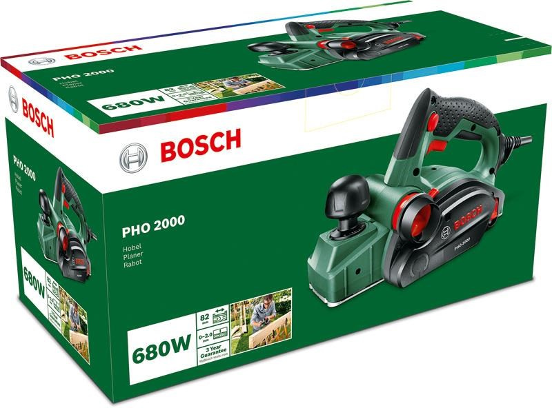 Bosch PHO 2000 hoblík, šířka 82 mm, aretace proti zapnutí, ochranná botka, oboustranné vyhazování hoblin