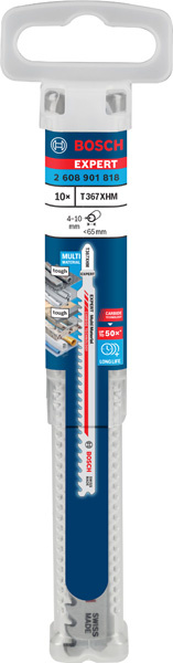 Vydrží až 50× dlhšie než pilový plátok Bosch T345XF - Niekedy potrebujete plátok, na ktorý sa môžete spoľahnúť. Pilový plátok, ktorý si poradí so stavebným drevom, v ktorom je kov. Alebo s drevovláknitými doskami. Alebo s tvrdými skrutkami. Pilový plátok EXPERT Multi Material thick and thin T367XHM skutočne dokáže pracovať s rôznymi materiálmi a reže ešte dlho po tom, ako iné pilové plátky zlyhajú. Extrémna odolnosť plátku EXPERT Multi Material thick and thin T367XHM zabezpečuje karbidové technológie Bosch Carbide Technology – pokročilá štruktúra zubov sa vyrába pokročilými spôsobmi a obsahuje ten najtvrdší kov. Navyše má plátok konštrukciu zubov optimalizovanú pre silu a rýchlosť. Progresívna rozteč zubov navyše reže materiál všetkých hrúbok agresívne, ale bez lámania. Pilový plátok Bosch EXPERT Multi Material thick and thin T367XHM dokáže rezať húževnaté drevené materiály s kovovými prvkami aj ďalšie odolné konštrukčné materiály. Je to pilový plátok, na ktorý sa môžete spoľahnúť. Kompatibilný so všetkými pílami s upínaním do T