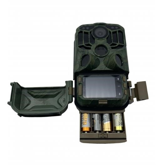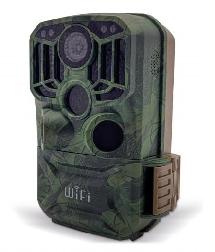 Fotopast s CMOS 8MP, objektívom 90° a WiFi komunikáciou s mobilom pomocou free App. Záznam 1-3 foto 24 MP alebo 5-180s video 2,7K, 3xPIR senzor 120°/ odozva 0,6s/ 34 Black IR LED do 20m, vnútorný 2" LCD, SD do 32GB, 8x AA batérie, rozmery 95x137x64mm, hmotnosť 292g. Vodotesný prístroj podľa IP66, farebné denné zábery a čiernobiele v noci, WiFi - free App na kontrolu, sťahovanie a živý náhľad na dosah prístroja, záznam dátumu, času, teploty a fázy mesiaca, PIR senzor má 3 citlivosti, interval medzi zábermi 5s-60min, time-lapse zábery 5s-24h, stand-by až 6 mesiacov, mikrofón, reproduktor. Slot SD, miniUSB, DC in 6V/2A pre externý zdroj, TV out, statívový závit, dizajn camouflage. V dodávke kábly USB/TV out, diaľkové ovládanie, remienok a kovové uchytenie s guľovou hlavou. BlackVision LED nie sú vidieť ani pri priamom pohľade na fotopast pri expozícii.