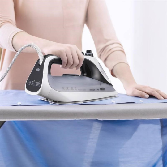 Udržujte si svoje oblečenie vždy krásne čisté a bez záhybov. Po vypražení a vysušení ho vyžehlíte pomocou naparovacej žehličky Braun TexStyle 7 Pro SI7149WB, ktorá vyniká vysokým výkonom a jednoduchým používaním. Na spodnej strane sa nachádza žehliaca plocha EloxaPlus s technológiou FreeGlide3D, ktorá umožňuje jednoduché prechádzanie vo všetkých smeroch, vrátane švov alebo gombíkov. Na extra odolné nerovnosti a záhyby použite parný ráz 220 g/min, k bežnému používaniu vám potom postačuje variabilná para 50 g/min. Pred začatím žehlenia naplňte 300 ml nádobku na vodu a vždy, keď potrebujete, doplňte tekutinu priamo cez veľké hrdlo z kohútika. Vďaka funkcii AntiDrip nebudú na vyžehlenom oblečení viditeľné stopy či kvapky.
