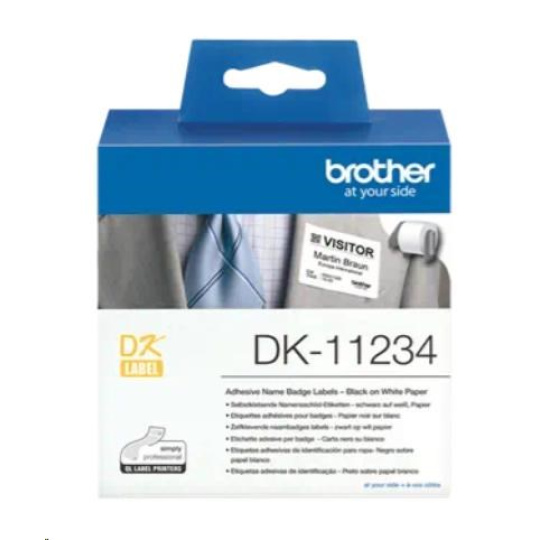 BROTHER DK-11234 -Originální samolepicí štítek na oděv - černý tisk na bílém podkladu, 60 mm x 86 mm