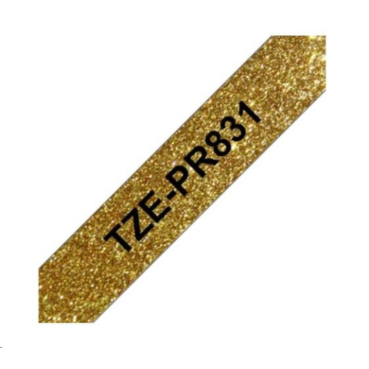 Genuine Brother TZe-PR831 Labelling Tape Cassette – Black On Premium Gold, 12mm wide Brother TZe-PR831 Black on Premium Gold Labelling Tape – 12mm wide.