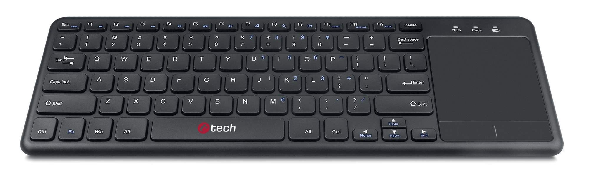 Bezdrôtová klávesnica C-TECH WLTK-01 s touchpadom je ideálnym riešením do vašej obývačky. Klávesnica je kompatibilná s väčšinou inteligentných televízorov, operačnými systémami Android, Chrome OS a Windows, čo vám zaručí veľmi pohodlné ovládanie všetkých multimediálnych zariadení. Klávesnica má úplnú českú a slovenskú lokalizáciu. Ešte väčší komfort pri používaní klávesnice WLTK-01 vám poskytne sada multimediálnych kláves, viacdotykový touchpad, kompaktné rozmery a nízka hmotnosť.