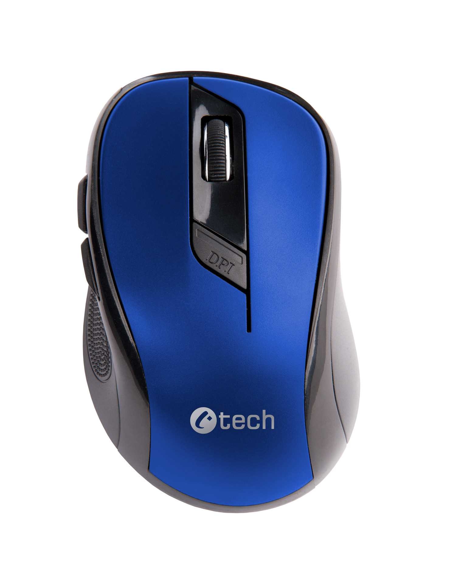 C-TECH Mouse WLM-02, čierno-modrá, bezdrôtová, 1600DPI, 6 tlačidiel, USB nano prijímač