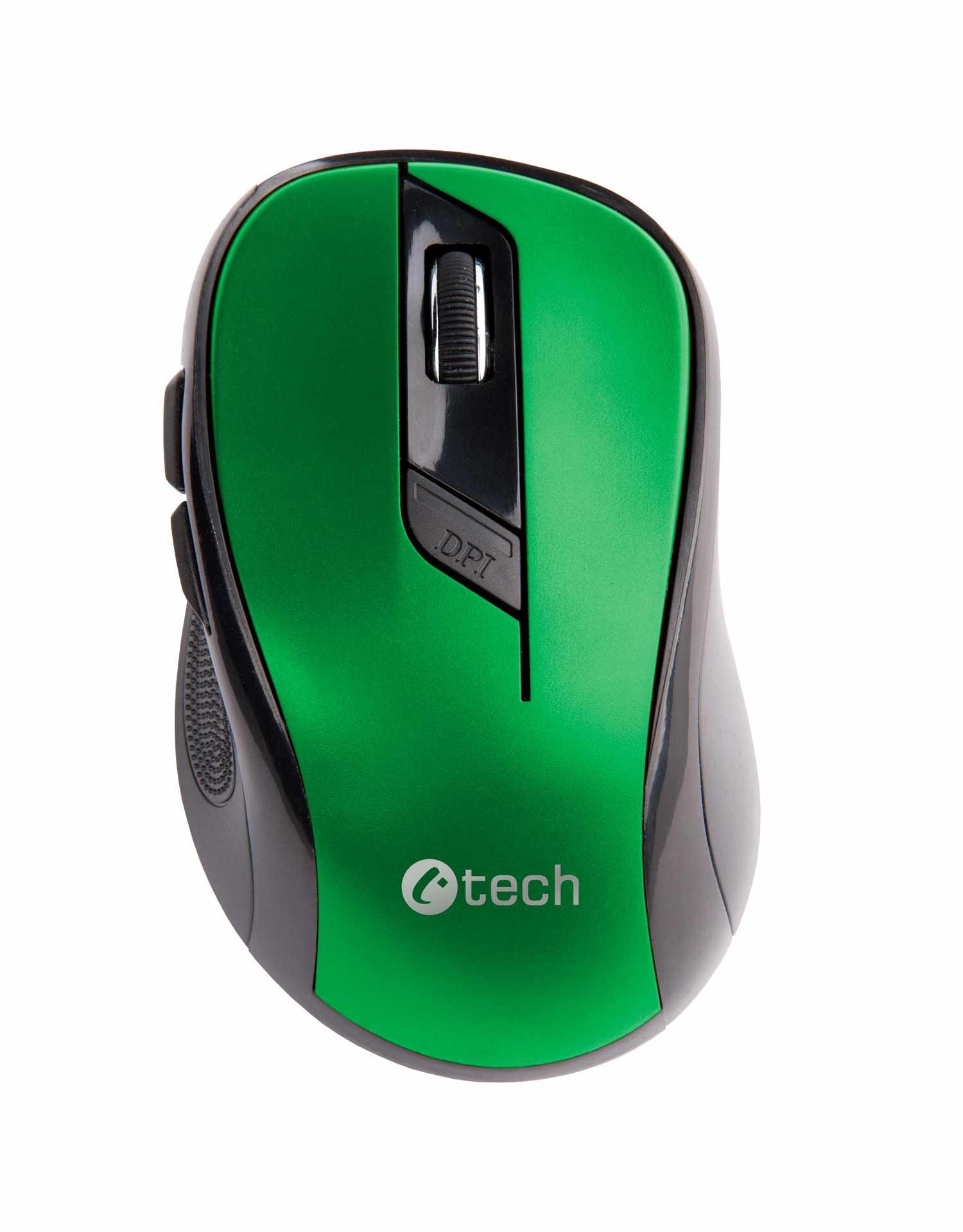 Myš C-TECH WLM-02, čierno-zelená, bezdrôtová, 1600DPI, 6 tlačidiel, USB nano prijímač
