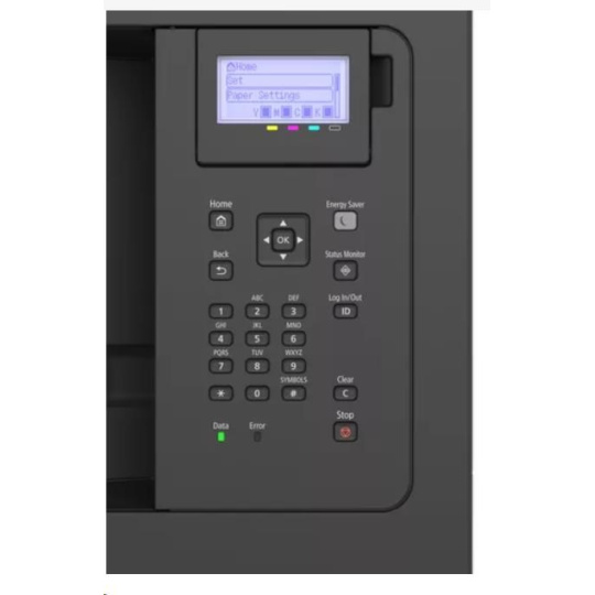 | Konzola | 5-riadkový LCD, 5 LED diód (Online, Pripravené, Správa, Úloha a Šetrič energie), Tlačidlá, 10-klávesová numerická klávesnica |