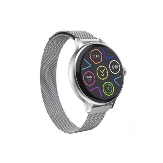 Luxusné fitness hodinky CARNEO HERO mini HR+ s Milánskym, kovovým remienkom s farebným Super HD AMOLED displejom. Monitorujú vašu dennú aktivitu, výšku stresu a je možné ich spárovať s mobilným telefónom, čím vás upozornia na prichádzajúci hovor či SMS. Ich dokonalé, minimalistické kovové telo s jednoduchými krivkami je tak návykové, že ich nebudete chcieť po prvom nosení dať z ruky dole. Hodinky vám umožňujú vyrídiť telefonický hovor cez zabudovaný mikrofón a reproduktor, ak budete v dosahu spárovaného telefónu (vzdialenosť až 10 metrov).