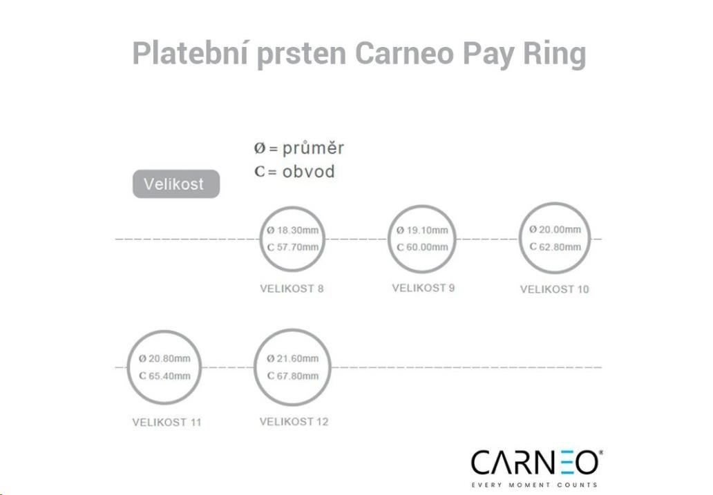 Elegantný platobný prsteň Carneo, vyrobený z prémiovej odolnej keramiky, kombinuje vysokú odolnosť voči poškrabaniu, vodotesnosť a komfort nosenia. Platby sú realizované bezkontaktným spôsobom prostredníctvom technológie NFC, bez nutnosti nabíjania. Aktivácia a správa prebiehajú jednoduchým spárovaním cez aplikáciu Carneo Pay, ktorá využíva tokenizáciu platby, čím zaručuje bezpečnosť. Prsteň je kompatibilný s Android aj iOS zariadeniami, je odolný voči vode podľa štandardu IP68 a je k dispozícii v niekoľkých veľkostiach.