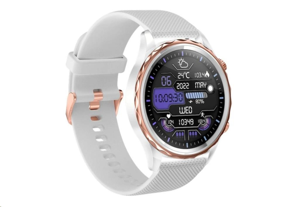 Moderné outdoorové fitness chytré hodinky Carneo Queen HR+ v elegantnej bielej farbe so striebornou korunkou z nehrdzavejúcej ocele majú kruhový farebný displej SUPER AMOLED chránený tvrdým minerálnym sklom. Umožňujú meranie srdcového tepu, stresu, BMI, najetých vzdialeností, monitorovanie spálených kalórií či kvality spánku. Obsahujú 380mAh batériu s výdržou až 5 dní. Podľa certifikácie IP67 sú odolné voči vode a prachu. Sú kompatibilné s operačným systémom iOS a Android. Hodinky majú na dotyk príjemný silikónový remienok v čiernej farbe, ktorý je možné vymeniť za remienok v inej farbe alebo kožený či kovový, čím môžete zmeniť športový vzhľad hodiniek na manažérsky. Vkusný outdoorovo-luxusný dizajn sa ľahko kombinuje s oblekom alebo voľnočasovým outfitom. Hodinky aj aplikácia sú kompletne v češtine, takže si budete určite rozumieť.