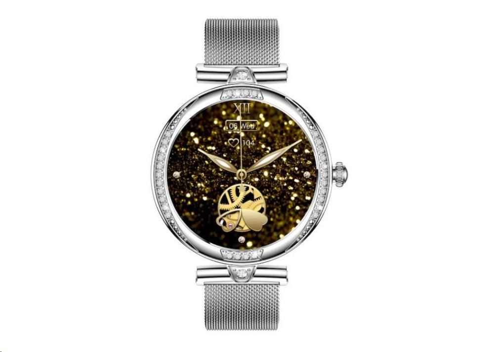 Luxusné dámske fitness hodinky CARNEO Seinna HR+ strieborné sú skutočným šperkom na ruke každej ženy. Kovové telo osadené brúsenými kameňmi pritiahne pohľady všetkých. S farebným SUPER AMOLED displejom monitorujú vašu dennú aktivitu a je možné ich spárovať s mobilným telefónom, vďaka čomu môžete vybaviť telefónny hovor priamo zo zápästia, alebo vás upozorní na prichádzajúci hovor, SMS alebo správu z aplikácií.