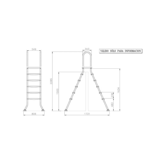 Bazénový rebrík pre bazény so stenou až 150 cm, vyrobený z kvalitnej nerezovej ocele, ktorá zabezpečí jeho dlhú životnosť. Rebrík má silné stabilné plastové stupnice a plošinu s protisklzovou úpravou, unesie hmotnosť až 150 kg. Rebrík má 5 stupňov na vnútornej a vonkajšej strane. Nohy rebríka sú zakončené koncovkami z protisklzovej gumy so stabilnou podložkou, ktoré zabraňujú nechcenému pohybu rebríka a zvyšujú tak bezpečnosť. Zároveň zabraňujú poškodeniu vášho bazéna.