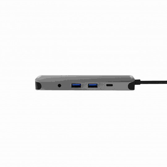 | Porty | 2x USB 3.2 Gen1 Type-A (5 Gb/s) 1x USB 3.2 Gen1 Type-C (5 Gb/s) 1x HDMI (4K@30Hz) 1x Audio zásuvka (pre podporu audio výstupu je potrebné pripojiť HDMI výstup) 1x USB Type-C pre PD3.0 Nabíjanie (do 80 W) 1x slot na kartu SD (480 Mbit/s) 1x slot na kartu MicroSD (480 Mbit/s) 1x LAN Ethernet (do 1 Gb/s) |