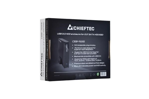 Externý rám CHIEFTEC pre 2,5" SATA HDD (max. 14.5 mm), USB3.0, hliník