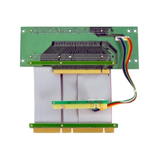 | Karta Riser má jeden slot PCI-E 16x a dva 3,3V 64-bitové sloty PCI-X, predlžovací kábel PCI-X, signálny kábel PCI
