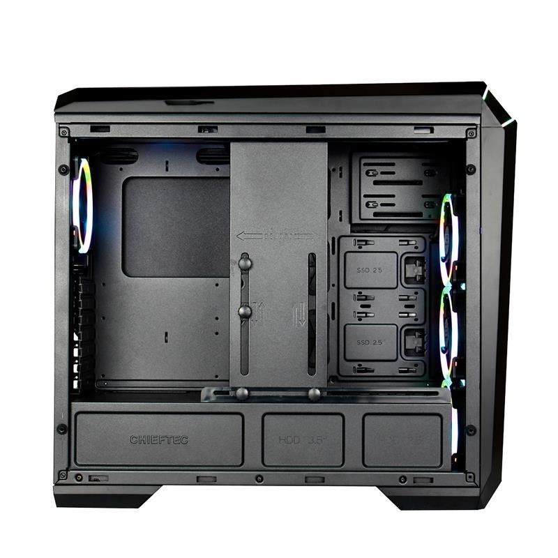 CHIEFTEC Miditower STALLION II, GP-02-OP Black, 4x RGB Rainbow Fan, 2 x USB 3.0/1x USB 2.0, bočné sklo