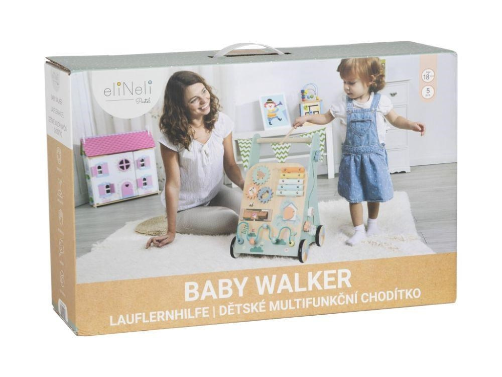 Krásne multifunkčné chodítko pre deti s xylofónom očarí každého svojim spracovaním, pastelovými farbami a množstvom možností na hru aj vzdelávanie. Chodítko pomôže deťom so samostatnou chôdzou, zabaví ich svojimi hracími prvkami, zdokonalí ich zručnosti. Bočné strany chodítka sú vkladačkou a dráhou s autíčkami, predná strana deťom ponúka farebné kolieska, korálky, dvierka na preskúmanie, i farebný xylofón.