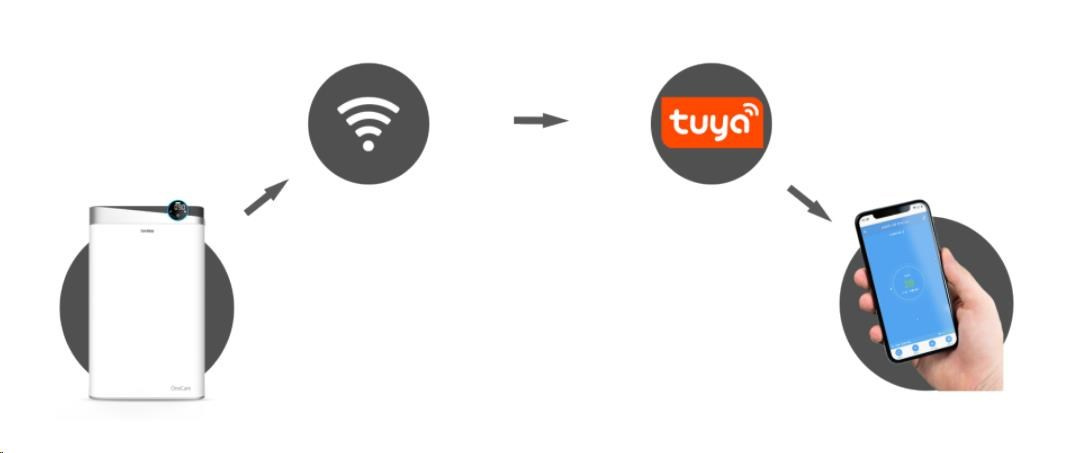 Model GARNI 45T OneCare má zabudovaný WiFi modul a podporuje platformu pre internet vecí (IOT) Tuya. Prostredníctvom mobilnej aplikácie Tuya Smart (lokalizovanej okrem iného aj do slovenského jazyka) alebo Smart Life môžete prehliadať namerané hodnoty kvality vzduchu v interiéri a ovládať jej funkcie. Na základe nameraných hodnôt inými zariadeniami podporujúcimi platformu Tuya, napríklad chytrým meracom kvality vzduchu GARNI 210T OneCare, je možné úplne automatizovať zapínanie a vypínanie čističky vzduchu a zabezpečiť tak optimálnu kvalitu vzduchu v danom prostredí.