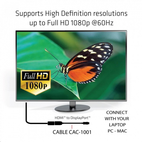 - Pasívny adaptér Club 3D DisplayPort ™ na HDMI ™