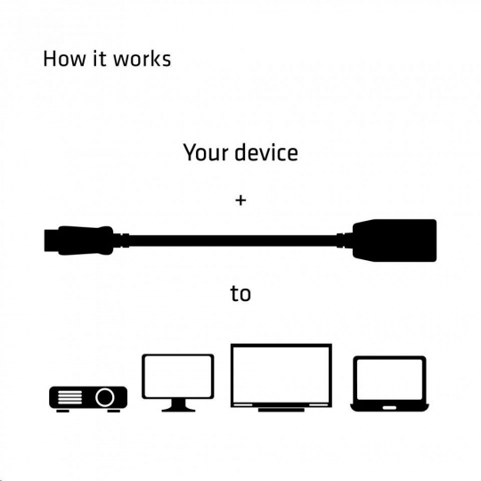 Adaptér podporuje grafické karty od AMD, Intel a Nvidia a maximálne rozlíšenie 1920x1200p. Jednoducho pripojte konektor DisplayPort ™ k počítaču a kábel HDMI ™ z displeja pripojte do adaptéru HDMI ™ (female). Inštalácia nevyžaduje inštaláciu softwaru. Obvody zabudované do adaptéru plynule prevádzajú video signál DisplayPort ™ do video signálu HDMI ™.