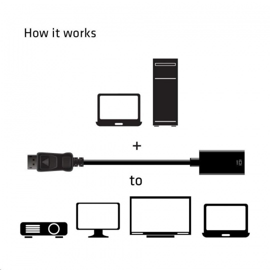 Club3D CAC-1080 je aktívny prevodník signálu DisplayPort ™ 1.4 to HDMI ™ 2.0b. Podporuje funkciu HDR video. To umožní prehrávať vysoko kvalitný mediálny obsah. Prijímač DisplayPort ™ podporuje až 5,4 Gb/s na jednu trasu (celkom obsahujúci 4 trasy). Výstup HDMI ™ je plne kompatibilný so špecifikáciou HDMI ™ verzia 2.0b. Prevodník je kompatibilný so staršími verziami Displayport ™ a HDMI ™, to však môže ovplyvniť funkčnosť a / alebo podporované funkcie, napríklad HDR.