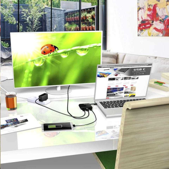 It also offers a Type-C PD input which charges your device with up to 60Watt at the same time. Supports Microsoft Windows® and Apple OS X, requires DisplayPort™ Alt Mode.