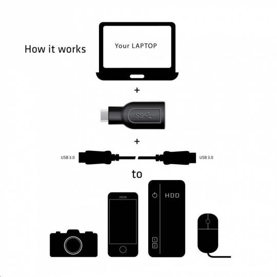 - Pripojte zariadenie typu USB typu A k notebookom, tabletom a ultrabookom s rozhraním USB 3.1 typu C.