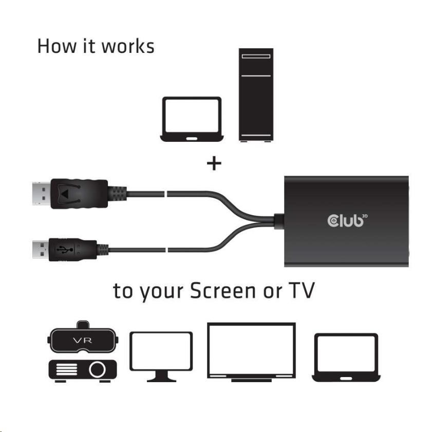 Club 3D DisplayPort ™ to DVI Dual Link Active Adapter Converter je najjednoduchšie riešenie pre pripojenie vášho Desktopu nebo Laptopu s konektorom DisplayPort ™ k televízoru, monitoru alebo projektoru s vysokým rozlíšením DVI-D. Adaptér podporuje grafické karty AMD, Intel a Nvidia a rozlíšenie 2560 x 1600p @ 60Hz. Jednoducho pripojte konektor DisplayPort ™ k počítaču a kábel DVI-D z displeja pripojte do adaptéru DVI (female).