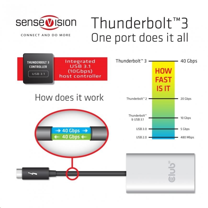 - Napájanie cez Thunderbolt™ 3, 15Watt, nie je potrebné externé napájanie
