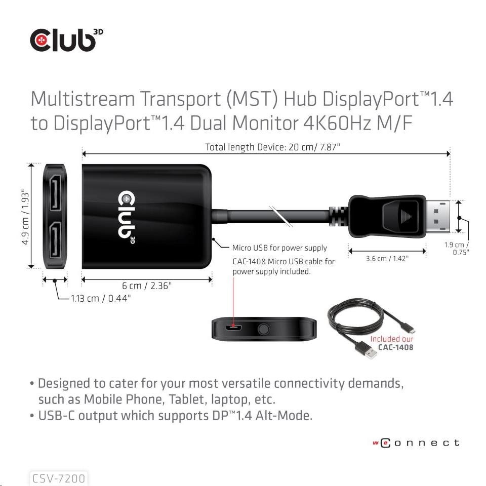 Club3D Hub MST USB-C na DisplayPort, 4K60Hz (M/F)