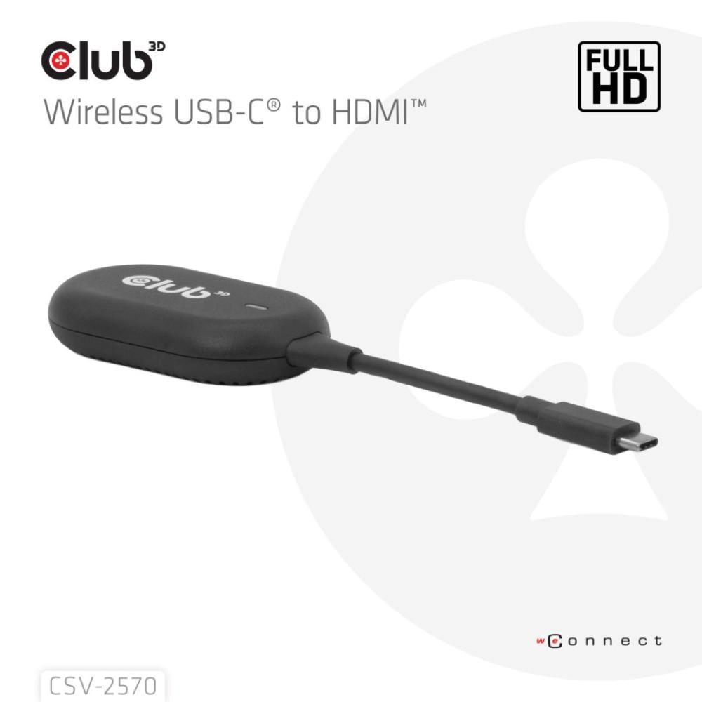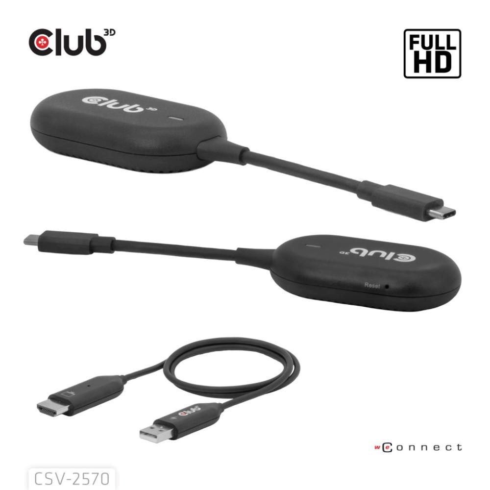 Club 3D CSV-2570 je prvé bezdrôtové zariadenie s technológiou HDMI. Pomocou vysielača a prijímača bezdrôtovo prenáša video a zvuk vo FullHD kvalite z zariadenia s USB-C na HDMI displeje.