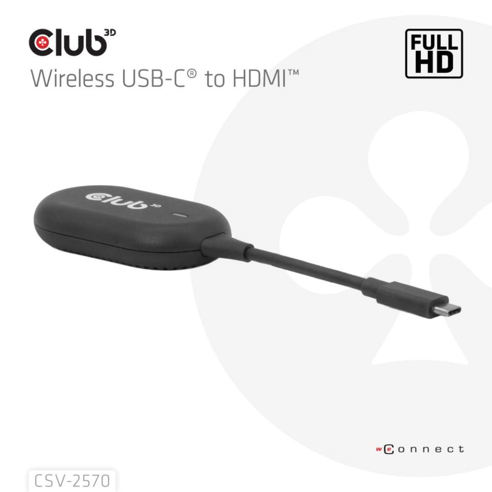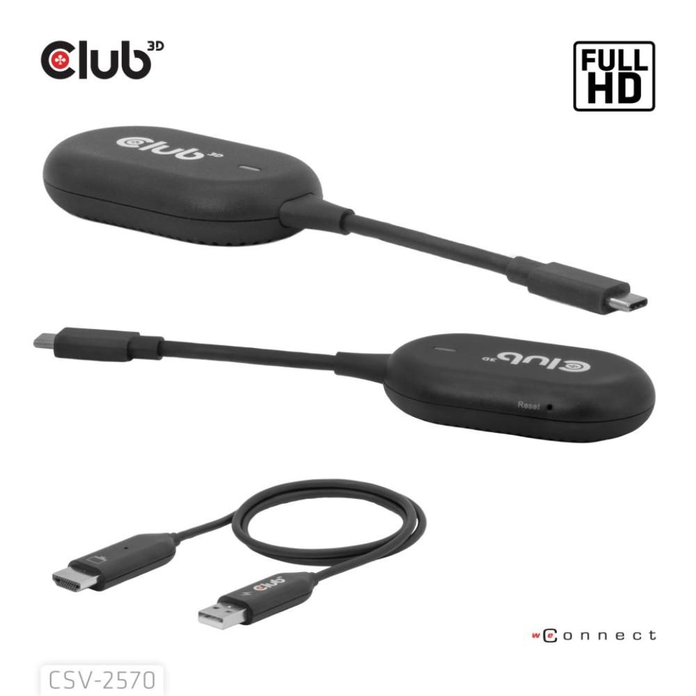 Club 3D CSV-2570 je prvé bezdrôtové zariadenie s technológiou HDMI. Pomocou vysielača a prijímača bezdrátovo prenáša video a zvuk vo FullHD kvalite z zariadenia s USB-C na HDMI displeje.