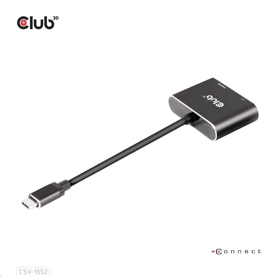 Club3D hub MST (Multi Stream Transport) USB3.2 Gen2 Type-C (DP Alt-Mode) na DisplayPort + HDMI 4K60Hz (M/F)