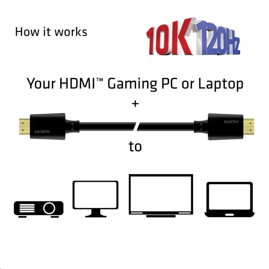 Všetky HDMI™2.1 funkcie sú plne podporované týmto káblom Club 3D CAC-1372. Je to ideálne riešenie pre dokonalé zabezpečenie HDMI™2 v budúcnosti.1 skúsenosť.