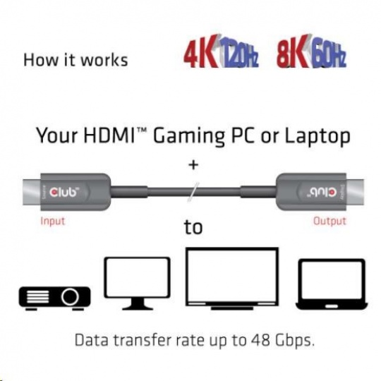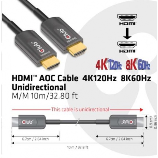 Aktívny optický kábel Club 3D CAC-1376 HDMI™ vám umožňuje pripojiť váš obľúbený displej na vzdialenosť 10 m/32.80ft.