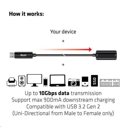 Club 3D CAC-1411 je predlžovací kábel USB typu A na predĺženie a posilnenie signálu USB až do 5 m/16.4 ft. Je kompatibilný s rozhraním USB 3.2 Gen 2 s maximálnou rýchlosťou prenosu dát 10 Gb/s. Je kompatibilný s nižšími verziami, upozorňujeme, že špecifikácie budú obmedzené pripojeným zariadením.