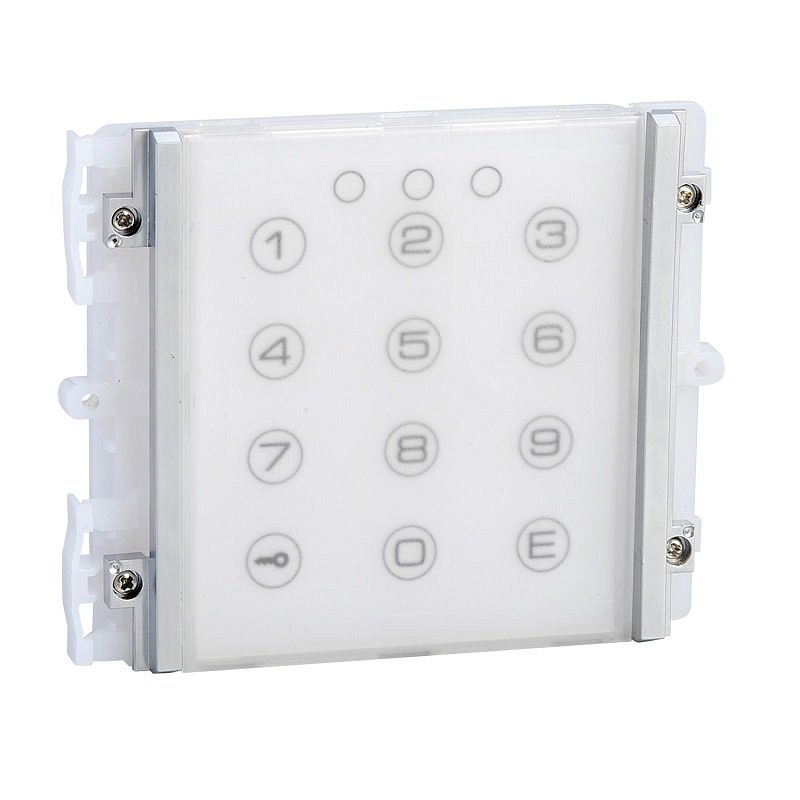 Modul kódového zámku 3348B pre IKALL SB, SBC, VIP, alebo ako autonómne zariadenie, podsvietené dotykové tlačidlá, nezávislé ovládanie 2 zámkov, LED indikácia otvorenia, kapacita 400 kódov, 2x NO/NC (max 100 mA / 24 V DC) relé výstupy, 1x 12 V DC / 250 mA ovládaný výstup, čas otvorenia 1-99 sek., napájanie 12 V DC, alebo z IKALL elektroniky dvernej jednotky, rozmery do inšt. rámika 112 x 90 x 40 mm, plastové prevedenie