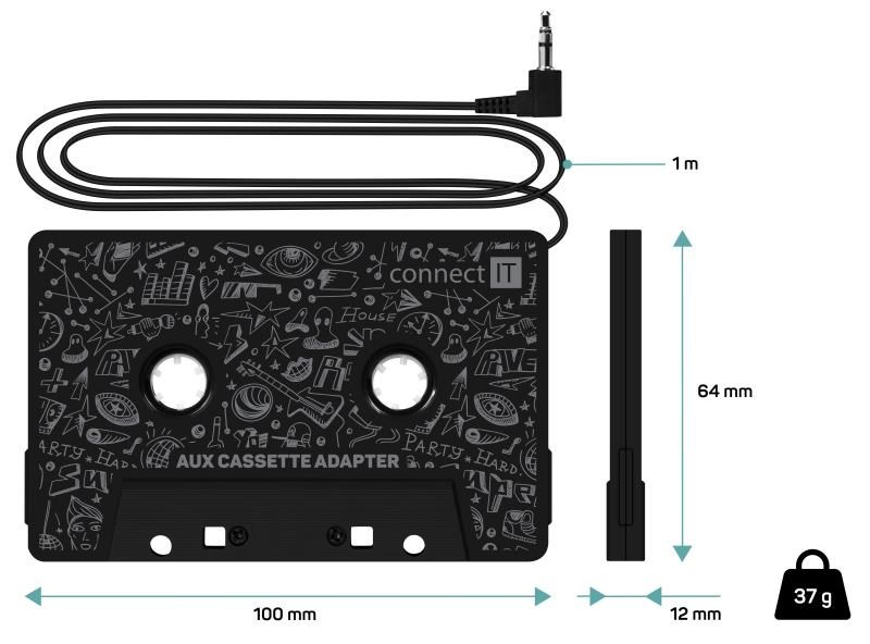 CONNECT IT AUX kazetový adaptér, 3,5 mm jack, černá