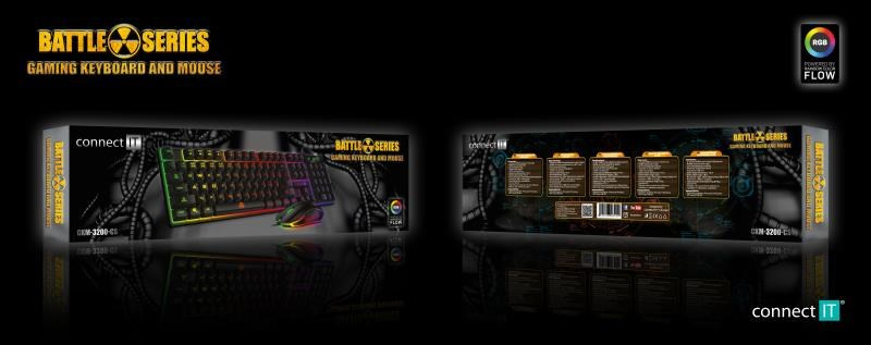 CONNECT IT BATTLE herní combo drátová klávesnice + myš, CZ + SK layout, černá
