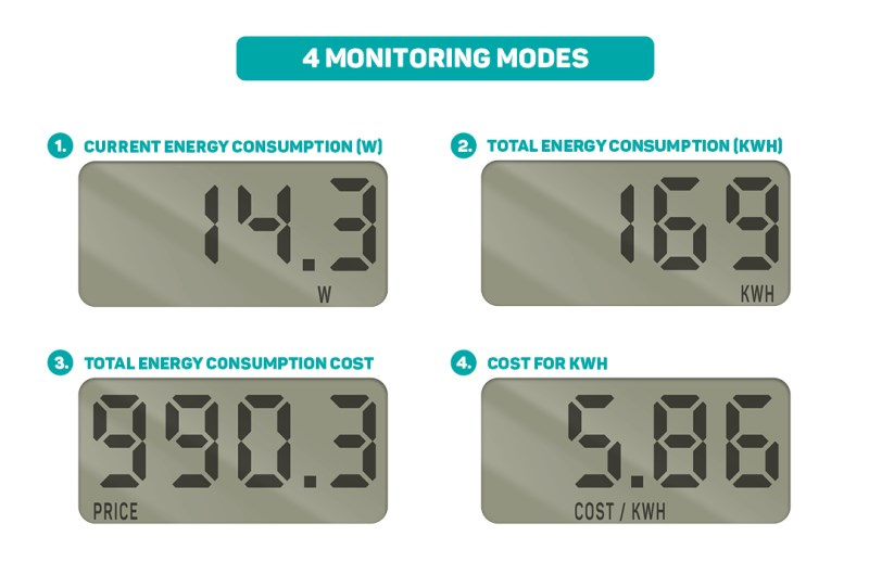 Merač spotreby elektrickej energie dokáže vypočítať zodpovedajúce finančné náklady a odhaliť, ktorý spotrebič odoberá najviac elektrickej energie a jeho prevádzka je teda najnákladnejšia. Medzi ďalšie funkcie merača patrí meranie okamžitého odoberaného výkonu. Tieto informácie Vám môžu prispieť k zníženiu nákladov na elektrickú energiu.