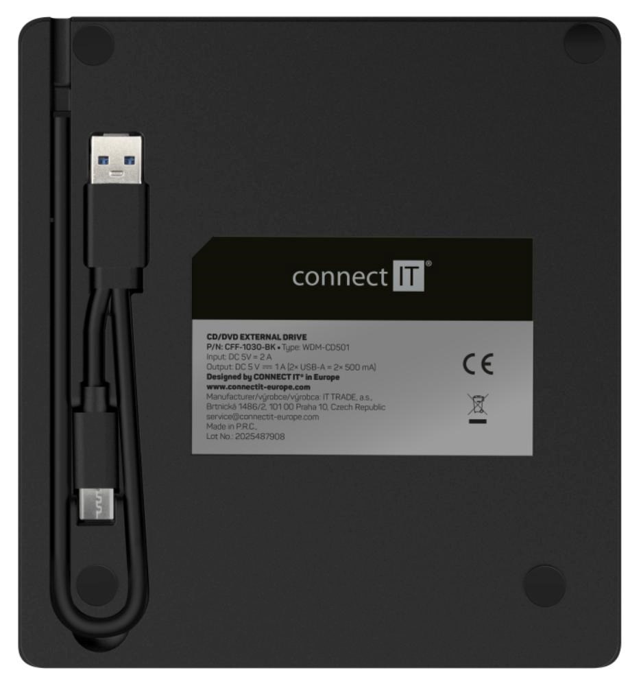 Pokud vlastníte notebook, ultrabook či netbook, je toto malé zařízení přesně to, co potřebujete. Můžete ho používat pro instalaci softwaru nebo k vytváření záloh. Externí CD/DVD SlimDrive vypalovačka CONNECT IT je napájena pomocí USB-C / USB-A portu, takže nepotřebujete žádný napájecí adaptér. Je jen o něco větší než DVD a snadno se vejde do kapsy batohu či brašny, můžete ji tedy vždy nosit s sebou.