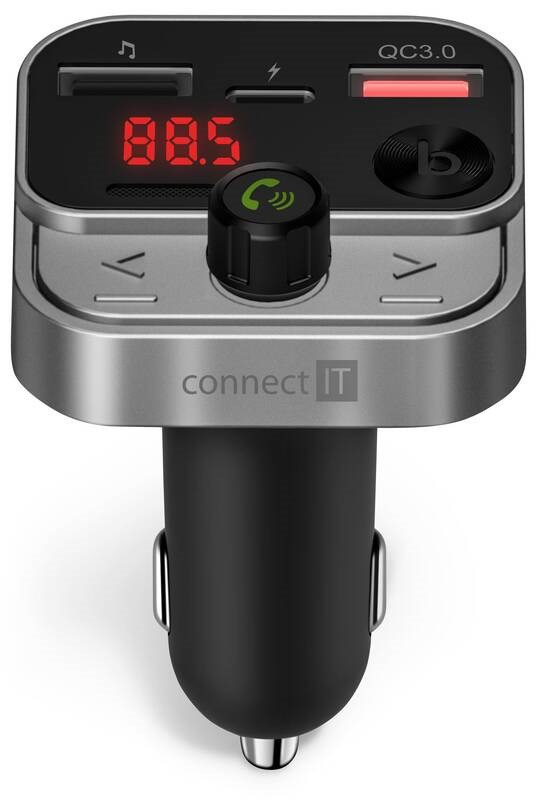 Bluetooth vysielač v kombinácii s trojportovou nabíjačkou je multimodálne zariadenie do vášho automobilu, vďaka ktorému môžete nielen nabíjať mobilné zariadenia, ale aj počúvať hudbu z USB flash disku alebo mobilného telefónu. Vysielač je vybavený digitálnym displejom a štyrmi ovládacími tlačidlami pre jednoduché a komfortné ovládanie všetkých funkcií. Samozrejmosťou tohoto zariadenia je aj možnosť bezdrôtového spárovania s vaším mobilným telefónom pre uskutočňovanie telefonátov. Na tento účel je vybavený aj zabudovaným mikrofónom.