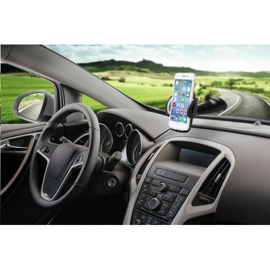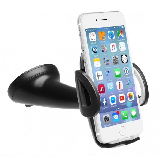 Univerzálny držiak do auta slúži na pripevnenie mobilného telefónu na sklo alebo palubnú dosku auta.