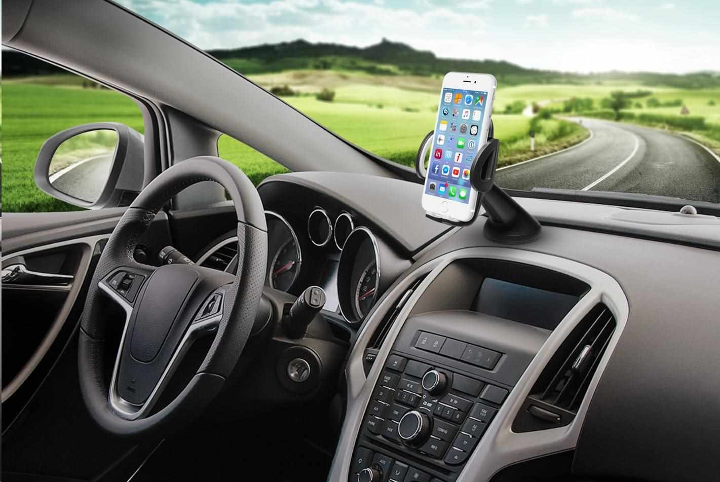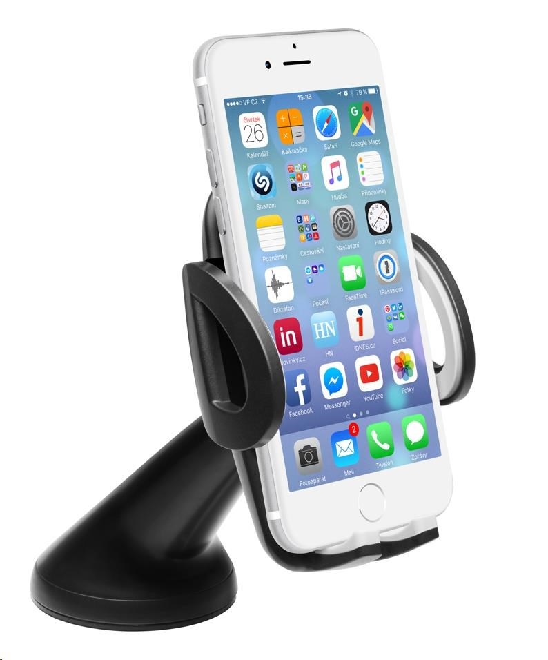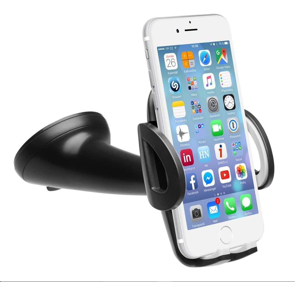 Univerzálny držiak do auta slúži na pripevnenie mobilného telefónu na sklo alebo palubnú dosku auta.