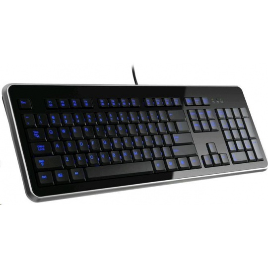 Klávesnica s LED podsvietením zaujme nielen svojím elegantným dizajnom, ale aj praktickosťou. Modré podsvietenie aktivované špeciálnym tlačidlom je ideálnym pomocníkom pri práci v tme. Multimediálne funkcie tlačidiel F1-12 uľahčujú, urýchľujú a spríjemňujú ovládanie prehrávača. Vlastnosti: - klasické rozloženie kláves - multimediálne funkčné klávesy F1-12 - aktivujú sa kombináciou s klávesom Fn - modré podsvietenie - jednoduchá a rýchla inštalácia - kompatibilný s väčšinou operačných systémov - rozhranie USB 1.1 a vyššie - dĺžka kábla 1,8 metra..