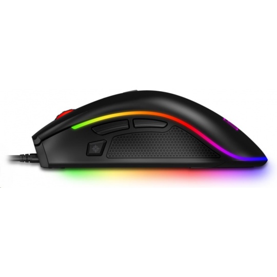 Profesionálna herná myš z edície NEO+ SERIES pre hráčov počítačových hier s ôsmimi nastaviteľnými tlačidlami, presným optickým snímačom a plnou podporou používateľských makier.