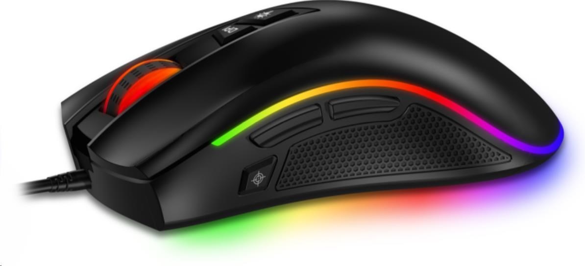 - Špeciálne bočné tlačidlo na prepnutie DPI do režimu "Sniper Mode" (Stlačením tohto tlačidla prepnete na inú úroveň DPI, ktorá je predvolene nastavená na 500 DPI. Druhým stlačením prepnete DPI späť na pôvodnú hodnotu.)